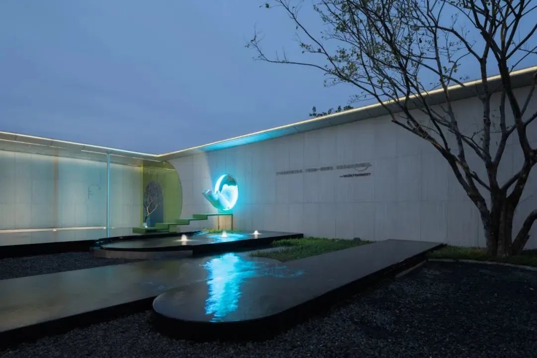 園區里采用中式庭院的設計構架,長(cháng)長(cháng)的連廊環(huán)水而建,精心設計的綠植賦予生機,充滿(mǎn)大自然的清新。景墻選用白色木化石景墻厚磚,取自于天然木紋,深淺紋理立體層疊,低調而不張揚的色澤,獨特工藝造就的層次感,復刻出木紋紋理的自然和質(zhì)樸,讓庭院在未來(lái)感的建筑群下增添了古樸悠韻的氛圍。