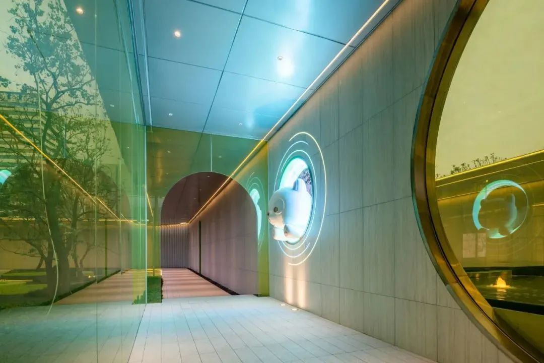 要說(shuō)最吸睛,最彰顯出年輕而前衛的審美品味的,莫屬于青黃色拱形玻璃立板,打破了傳統庭院的莊重和嚴肅,而添置的小熊形象,更是增添了無(wú)窮的趣味,充滿(mǎn)了設計考量。有活力且向公共開(kāi)放的高品質(zhì)商業(yè)建筑,表達獨特的美學(xué)追求與鮮明個(gè)性。